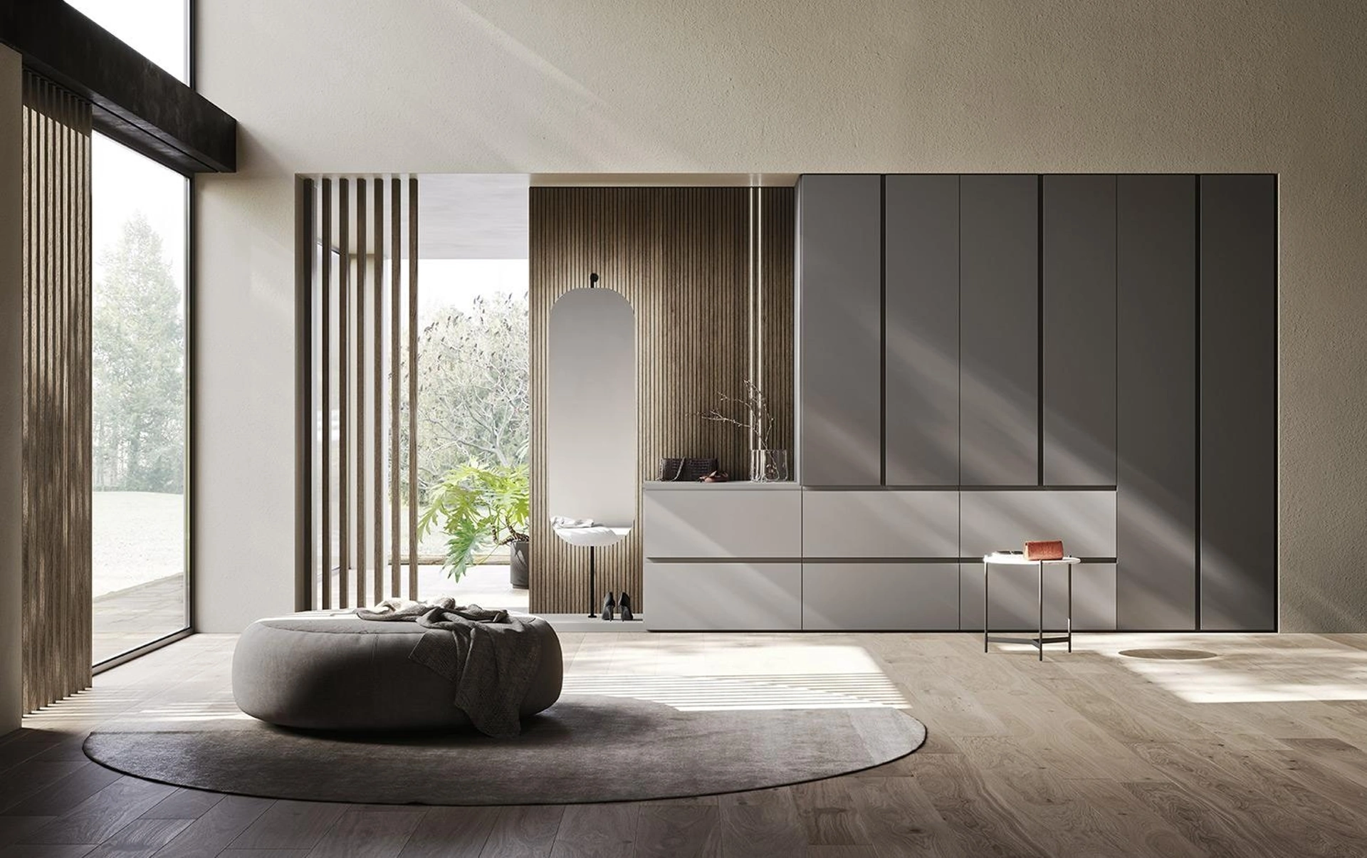 Se cerchi armadiature a muro con ante battenti, clicca e scopri l'armadio Comp N23 di Mobilgam in laccato opaco.