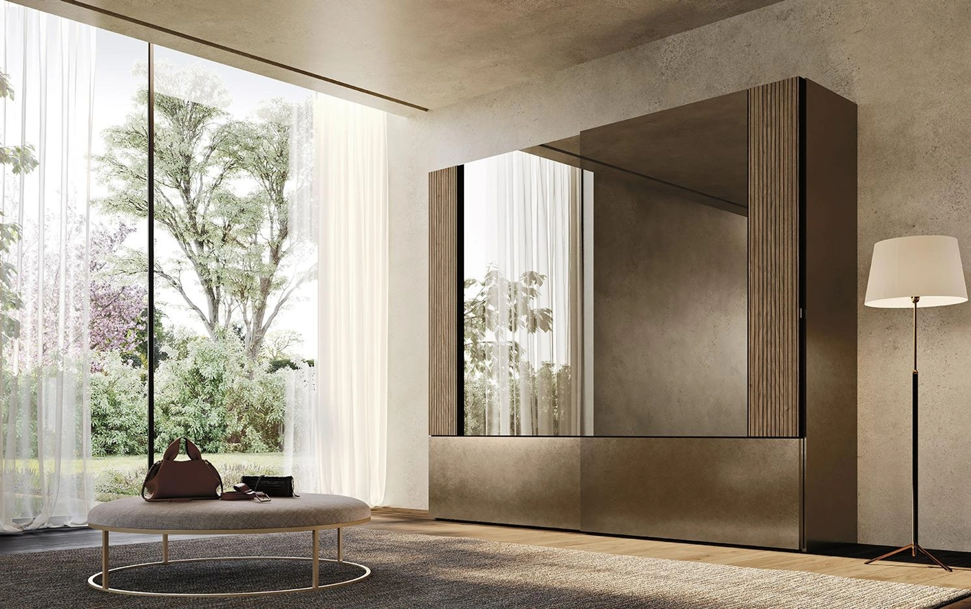 Se cerchi armadi a muro con ante scorrevoli, clicca e scopri l'armadio Comp N28 di Mobilgam in laccato opaco.