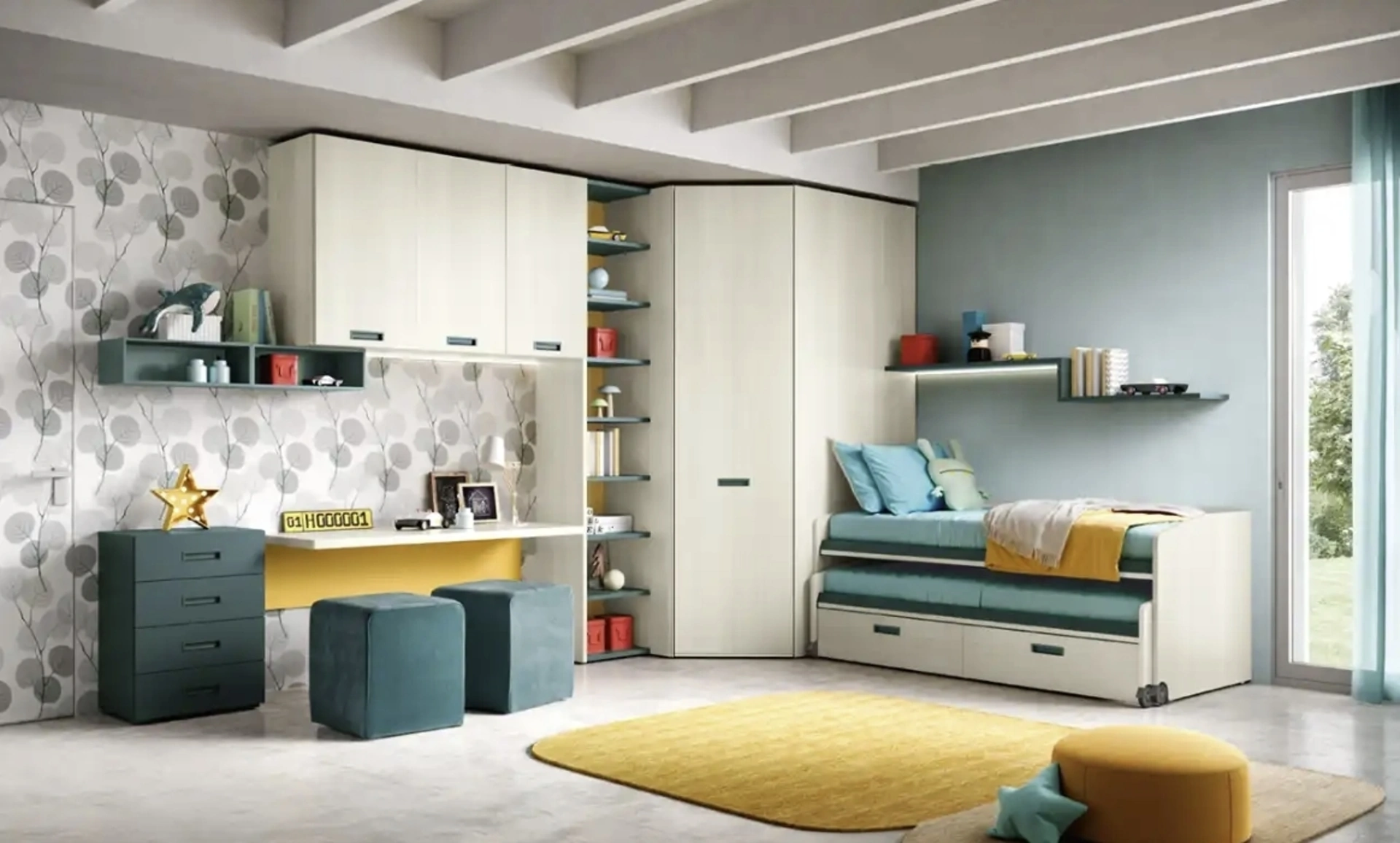 Con questa cameretta K105 Moretti Compact Camerette, tra le soluzioni con letti scorrevoli, potrai ammobiliare stanze moderne per bambini.