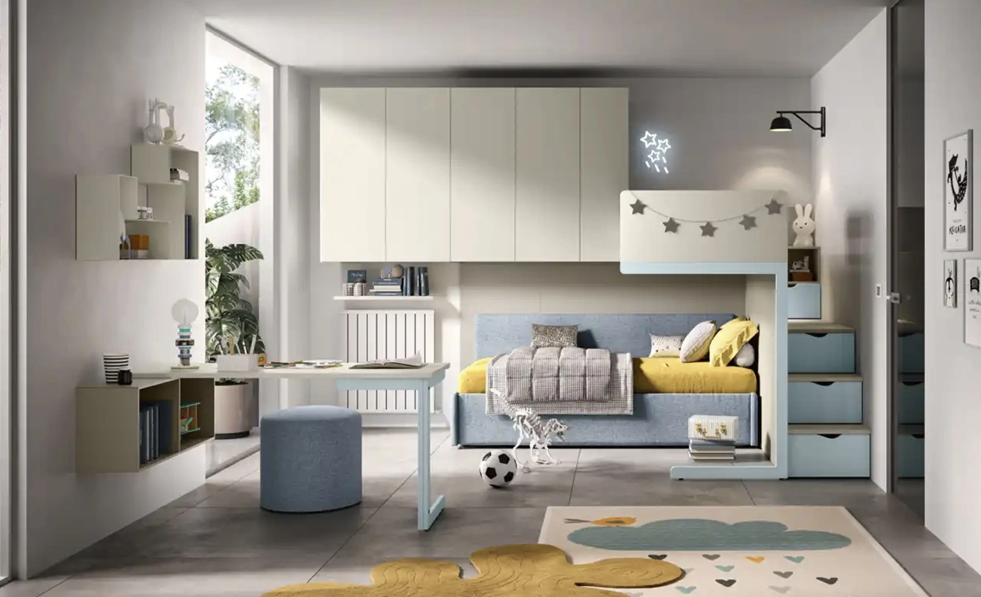 Nell'arredo della stanza dei giovani affidati a noi: nel nostro punto vendita presentiamo tutte le più belle composizioni arredative moderne per la loro camera. Porta design e tonalità vivaci nella stanza dedicata ai più giovani con questa soluzione, una tra le Camerette a soppalco per bambini di Moretti Compact Camerette. Se cerchi spunti creativi per organizzare perfettamente la stanza dei tuoi figli, ti presentiamo la Cameretta K118 di Moretti Compact Camerette con finitura in melaminico. Moretti Compact Camerette offre un ricco catalogo di accessori da abbinare su misura: troverai letto, guardaroba, tavolo da lavoro, sedie e librerie.