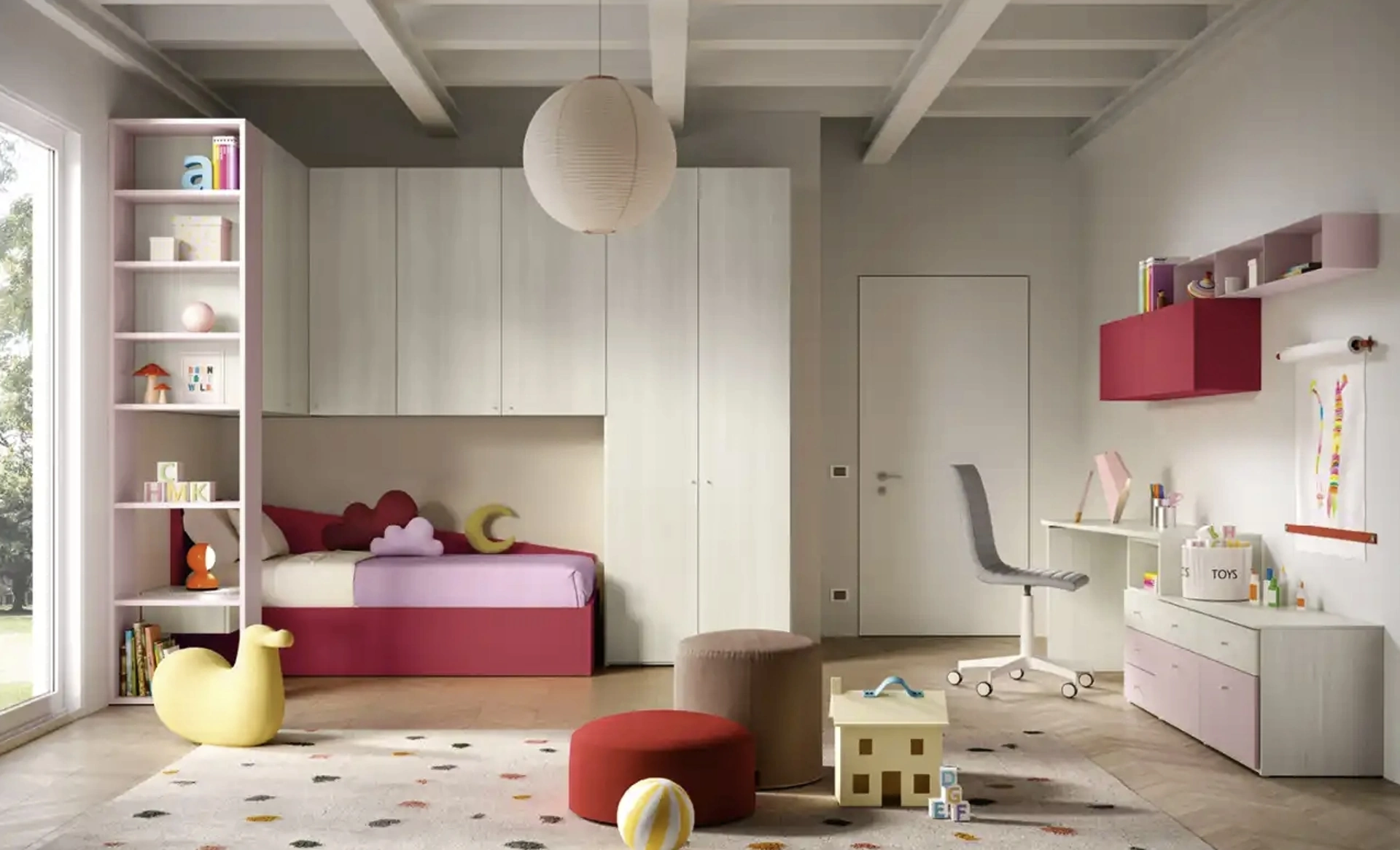 Arreda stanzette moderne con le Camerette a ponte Moretti Compact Camerette! Il modello K119 in melaminico è per bambine.