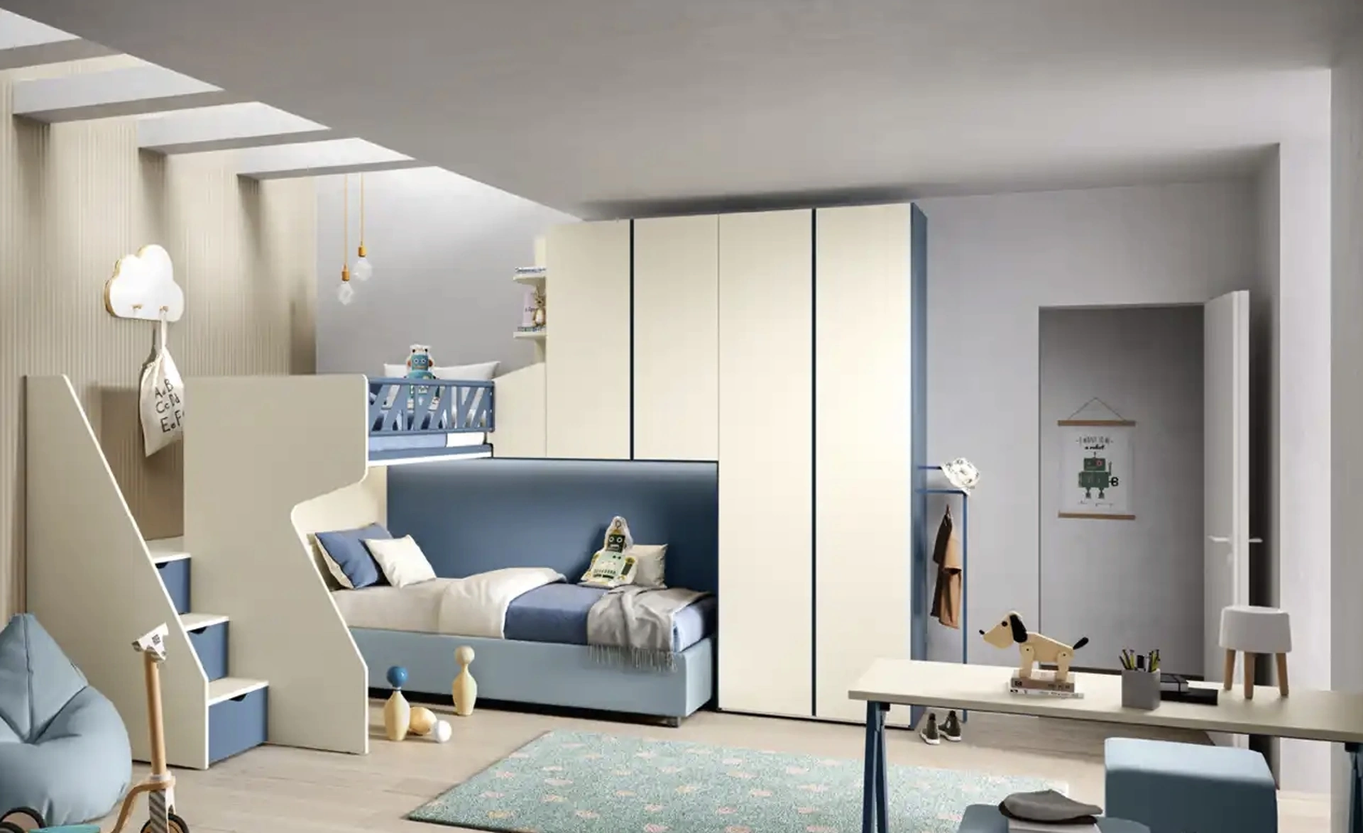 Con questa cameretta K123 Moretti Compact Camerette, tra le soluzioni a soppalco, potrai ammobiliare stanze moderne per bambini.