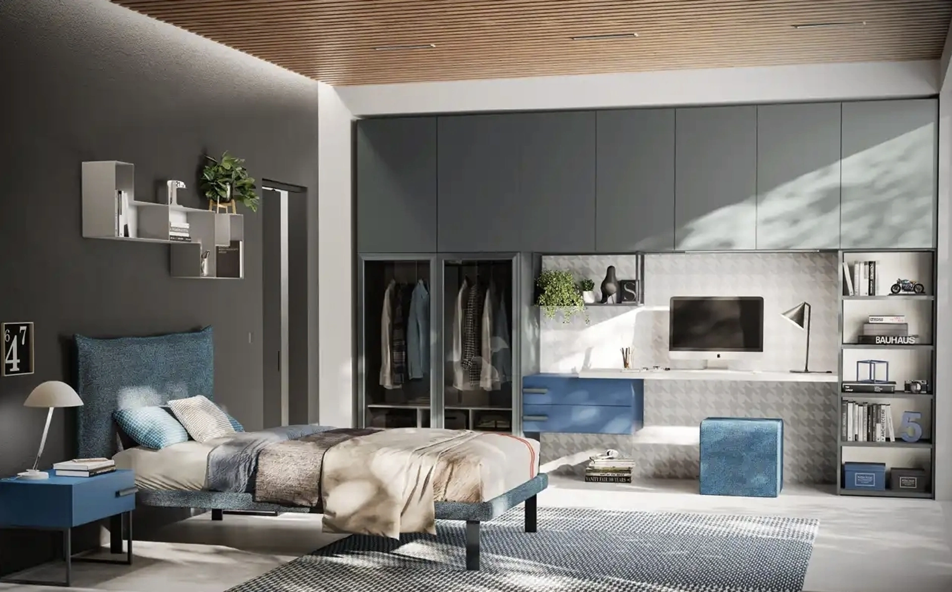 I nostri bambini trascorrono gran parte della giornata nelle loro camere da letto: rendile adatte per dedicarsi alla scuola, giocare e rilassarsi quotidianamente. Con la Cameretta Y108 di Moretti Compact Camerette in laccato opaco ti assicurerai un perfetto connubio di ergonomia e sicurezza, ideale per la stanza dei tuoi bambini. Proponiamo nel nostro showroom molteplici Camerette a ponte design per ragazzi del marchio, ideali per seguirli durante la loro crescita. In negozio ci occupiamo di seguirti dalla scelta dei mobili per la camera alla progettazione del luogo nel quale i tuoi bimbi cresceranno, divertendosi e sognando.