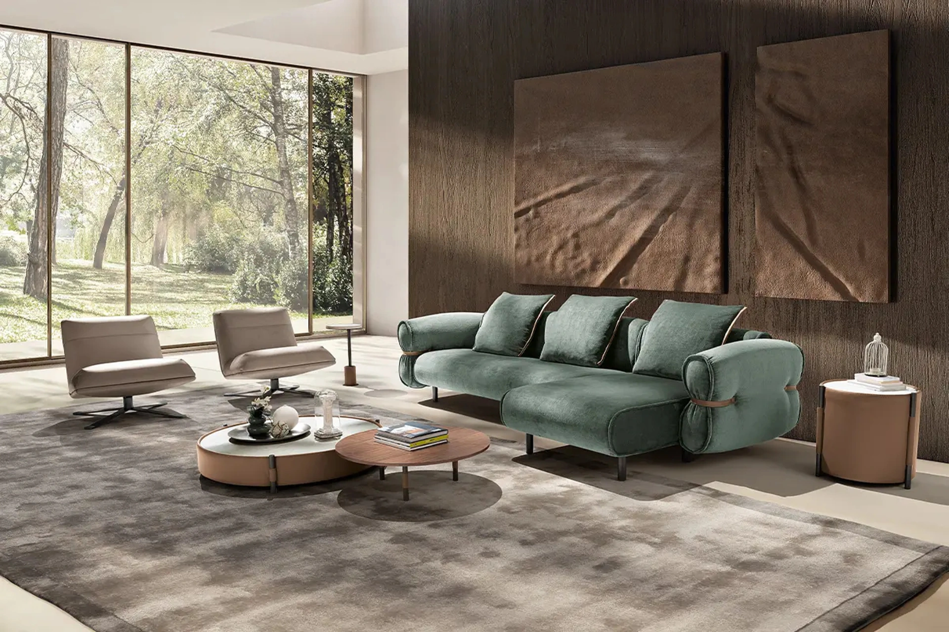 Con salotti e divani con penisola di Max Divani come il modello BonBon Up in tessuto, potrai completare il tuo progetto d'arredo.