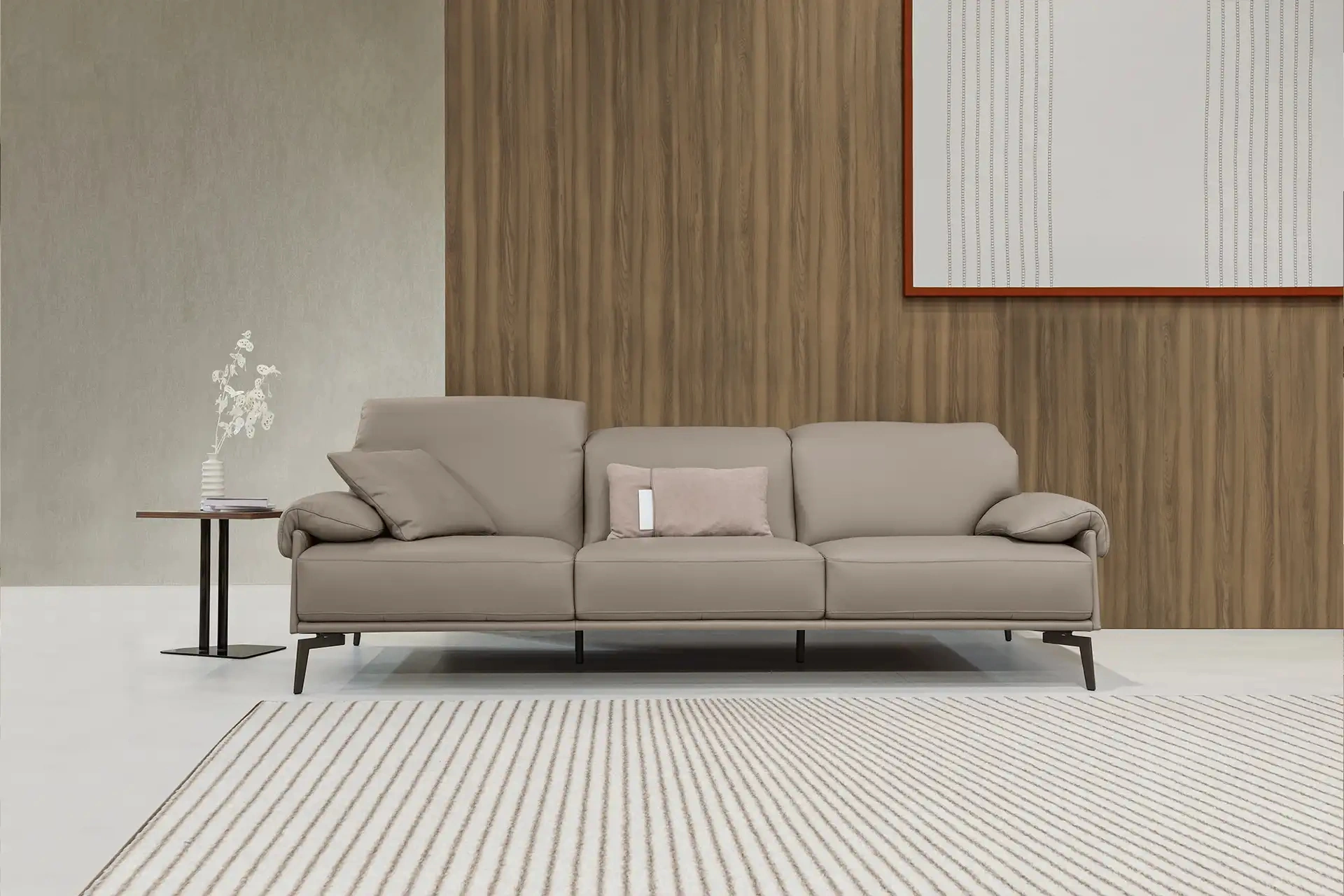 Divano lineare in pelle Norma di Max Divani: ideata dal rinomato brand, leader nel settore Arredamento Casa, questa soluzione completerà il tuo living con un tocco di stile, comfort e intimità. Divani e poltrone moderni: potrai ricreare un'ambientazione unica scegliendo dimensioni, conformazioni, volumi e finiture. Ottieni informazioni e contattaci, potrai trovare il prodotto perfetto da posizionare nel soggiorno che hai sempre voluto. Tra le diverse aziende produttrici di divani, Max Divani si distingue per l'eccellenza di finiture e finiture, come sa dimostrare il modello in pelle mostrato in foto.