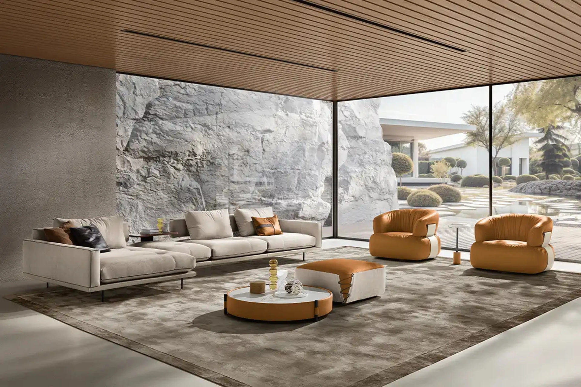 Se vuoi divani per salotti design, clicca e leggi di più sul modello Percy in tessuto del marchio Max Divani.