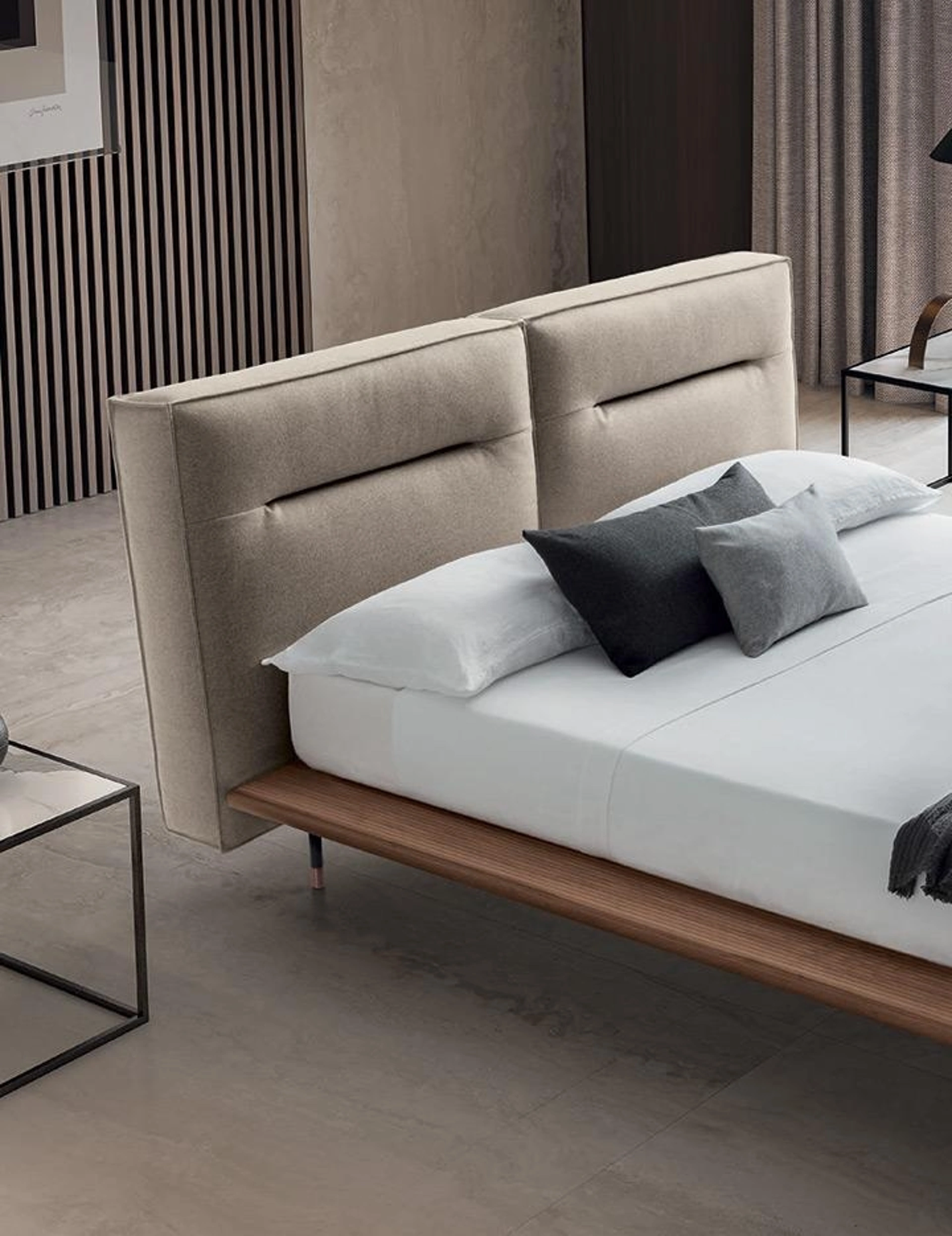 Nel nostro sito potrai trovare le proposte più valide dei migliori brand specializzati nell'arredo per la zona del riposo, con un’ampia possibilità di caratterizzazione in quanto a tonalità e abbinamenti, elementi accessori e tanto altro. Se desideri garantirti il comfort più totale nei tuoi momenti di riposo, scegli i Letti matrimoniali design in tessuto come il modello presente in foto. Scopri una ricca gamma di letti imbottiti dei migliori brand di Arredamento Casa disponibili nel nostro showroom e valorizza la tua zona notte. La zona notte è l'ambiente di casa che più rappresenta l'animo di chi la frequenta, interno in assoluto dedicato al relax, alla distensione e alla privacy. Il Letto con testiera Moonlight di Felis è una delle più esclusive soluzioni della firma, specialista del buon sonno, capace di assicurare praticità, comodità e un design unico.