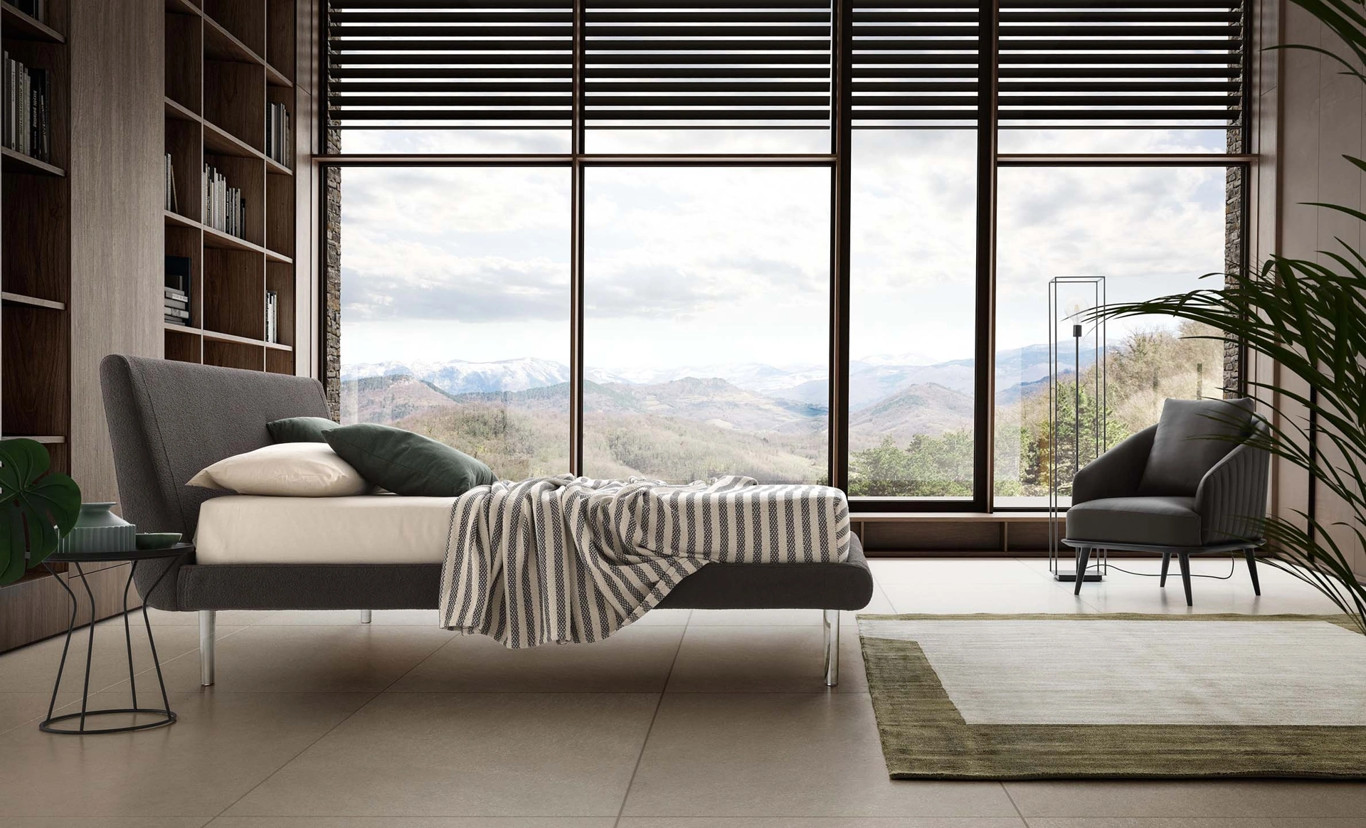 Scegli cromie e texture e realizza il tuo concept d’arredo nella camera da letto, progettandola proprio come l'avevi sognata. Se desideri una soluzione in tessuto, il modello presente in foto è connotato da materiali durevoli e forme decise, che invitano a passare un riposo sereno e rigenerante. Durante la scelta di un buon modello di letto, valuta con attenzione le sue misure, le finiture, la forma e il suo stile rispetto al resto degli arredi. I Letti matrimoniali imbottiti dell'azienda, leader nella realizzazione di Arredamento Casa per la zona del riposo, vengono progettati per essere abbinati a mobili ed elementi accessori di ogni tipo, come armadi e comodini, abat jour e piantane.