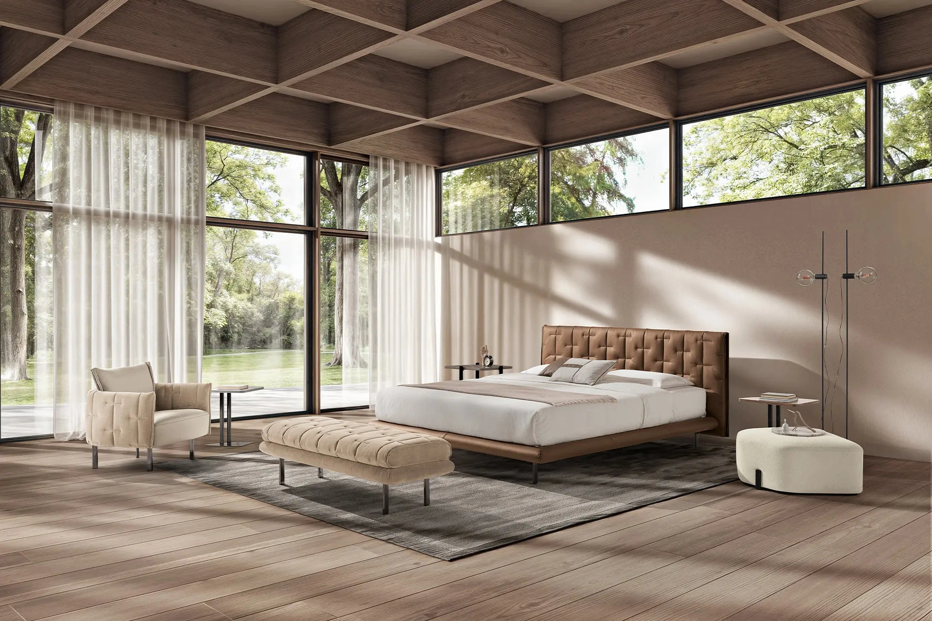 Il letto Muzzle in pelle, tra i modelli imbottiti matrimoniali design di Max Divani, è pensato per garantirti il sonno più profondo.
