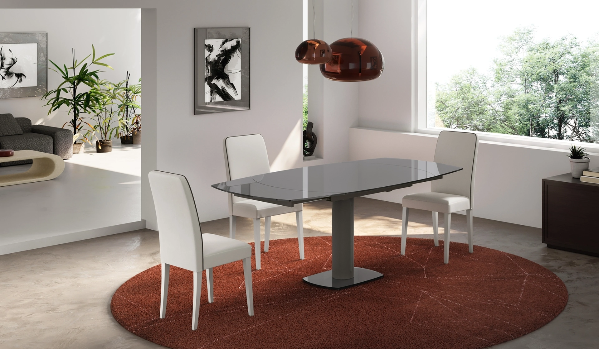 Vuoi arricchire spazi moderni? Ottieni informazioni sui tavoli moderni allungabili: il modello da pranzo Kyoto Glass ti sta aspettando.
