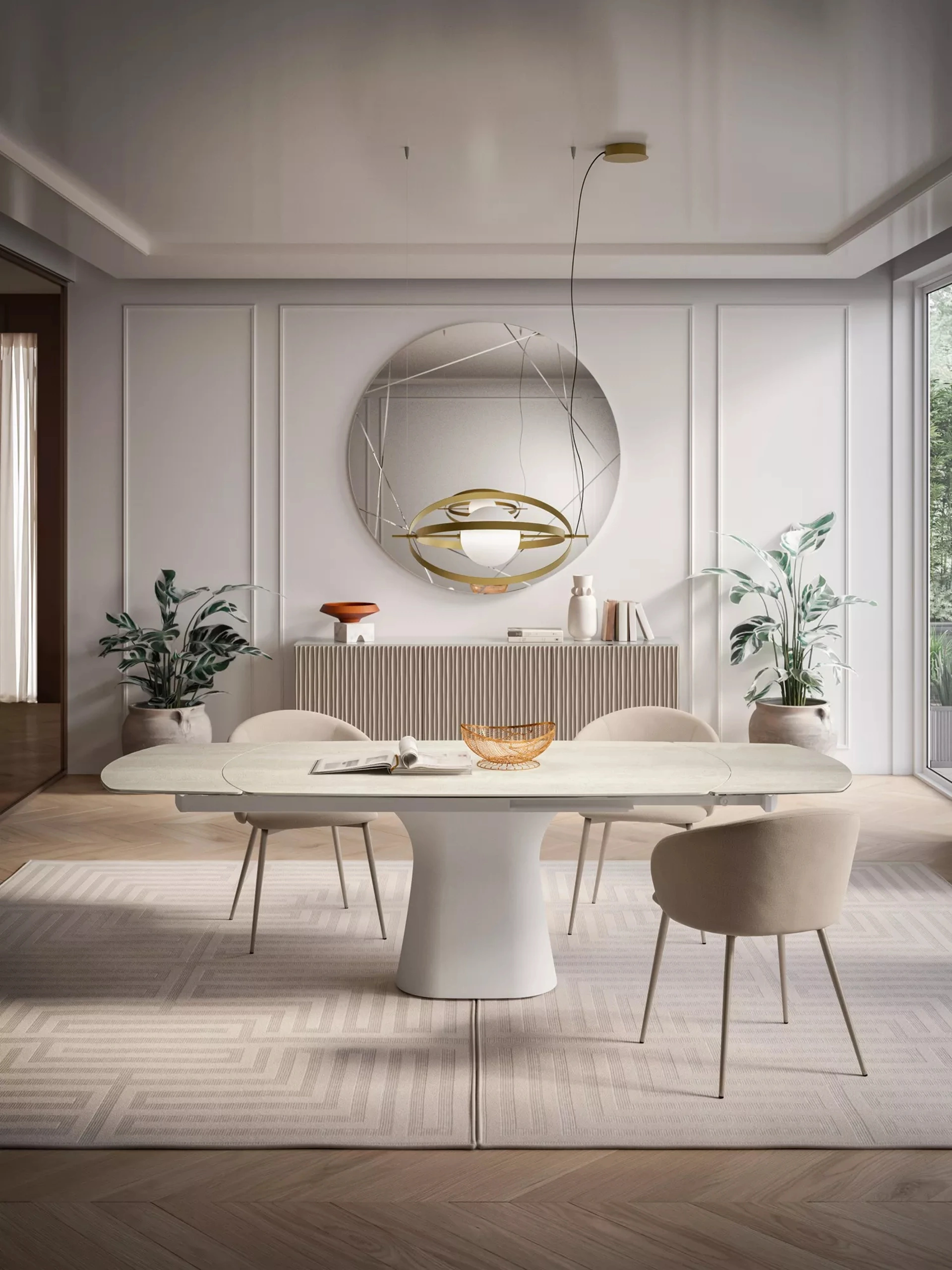 In negozio troverai una ricca gamma di mobili e complementi in gres dei migliori produttori, ideali per ultimare i tuoi spazi. Contattaci per informazioni e preventivi o puoi vedere in negozio le altre più originali proposte da pranzo in gres di Bontempi, esempio di tutta la qualità assicurata dal brand. Tavolo allungabile Podium di Bontempi: con questo modello potrai valorizzare spazi design garantendoti componibilità su misura e la massima progettualità dei tavoli allungabili.